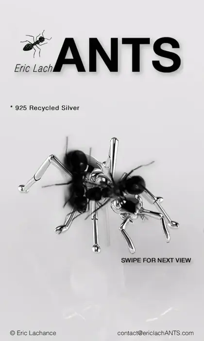 Responsive landing page to display Eric Lachance's Ant Earring pin. Implemented Shopify buy button to handle payments and inventory. Utilized CSS mix-blend-mode property to remove background on moving ants overlay.